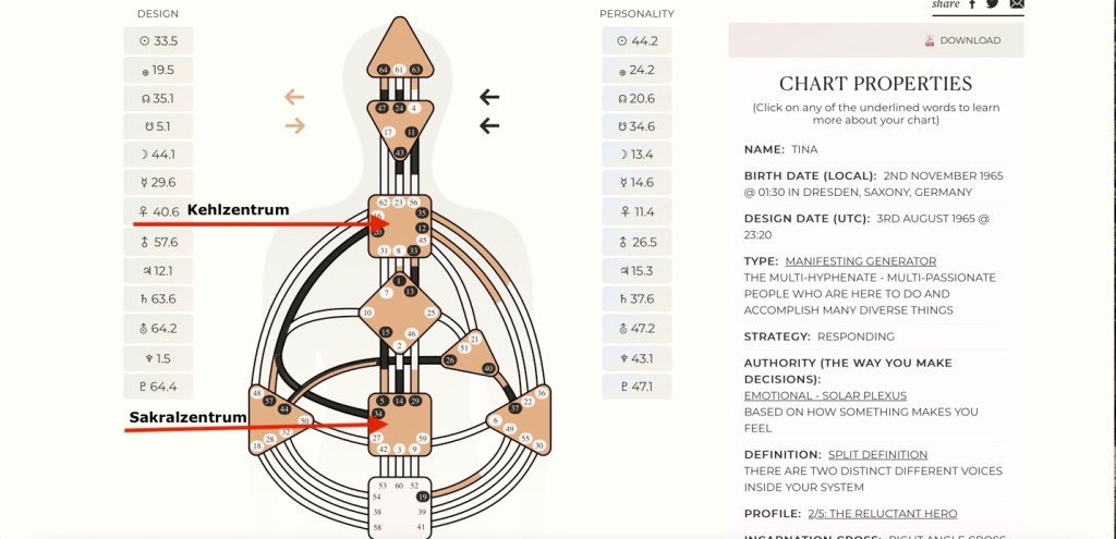 Ich habe mein Leben mittels Human Design rückverfolgt und festgestellt, dass ich immer meinem Typ gefolgt bin allerdings auch viele Dinge getan habe, die ich hätte lassen können, wäre ich meiner Autorität gefolgt.