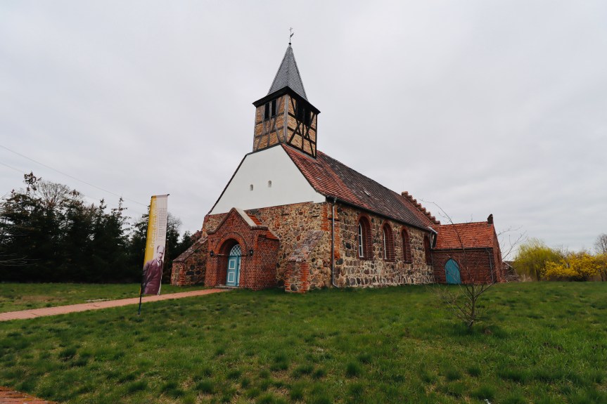 Die Dorfkirche ist sehr sehenswert, erbaut aus Feldsteinen und später mit Mauerziegeln ergänzt. Parken ist fast überall möglich.