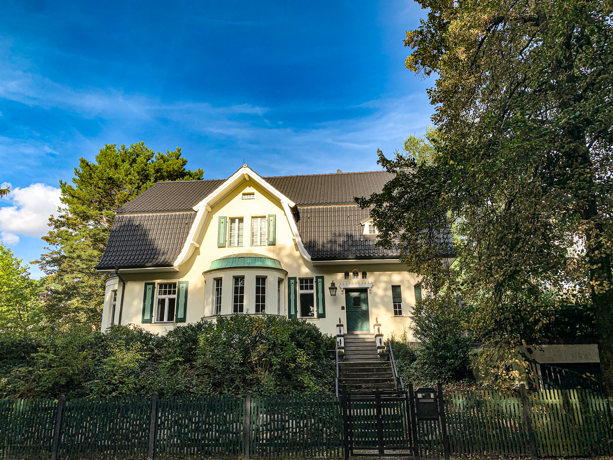 Anschließend gelangst du in das Wohngebiet Weinbergviertel. Hier finden sich unter anderem die 1936 erbaute Villa des Schauspielers Paul Henckels und das 1906 erbaute Landhaus des Dorfschullehrers Koch. Auch die mit Naturstein gepflasterten Wege und Straßen des Viertels stehen unter Denkmalschutz.