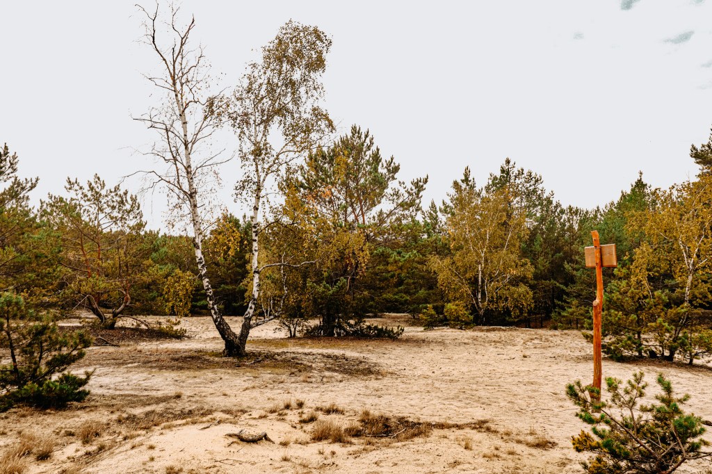Startpunkt ist der kostenlose Parkplatz am Naturparkzentrum Glauer Tal. Der Weg führt ein Stück an der Landstraße entlang und biegt an einer Ranch auf einen von Bäumen gesäumten, schmalen Feldweg ab. Am Wildgehege vorbei geht es durch den Wald. An dieser Stelle bekommst du von Außen einen guten Einblick in das hügelige Gelände des ehemaligen Truppenübungsplatzes.