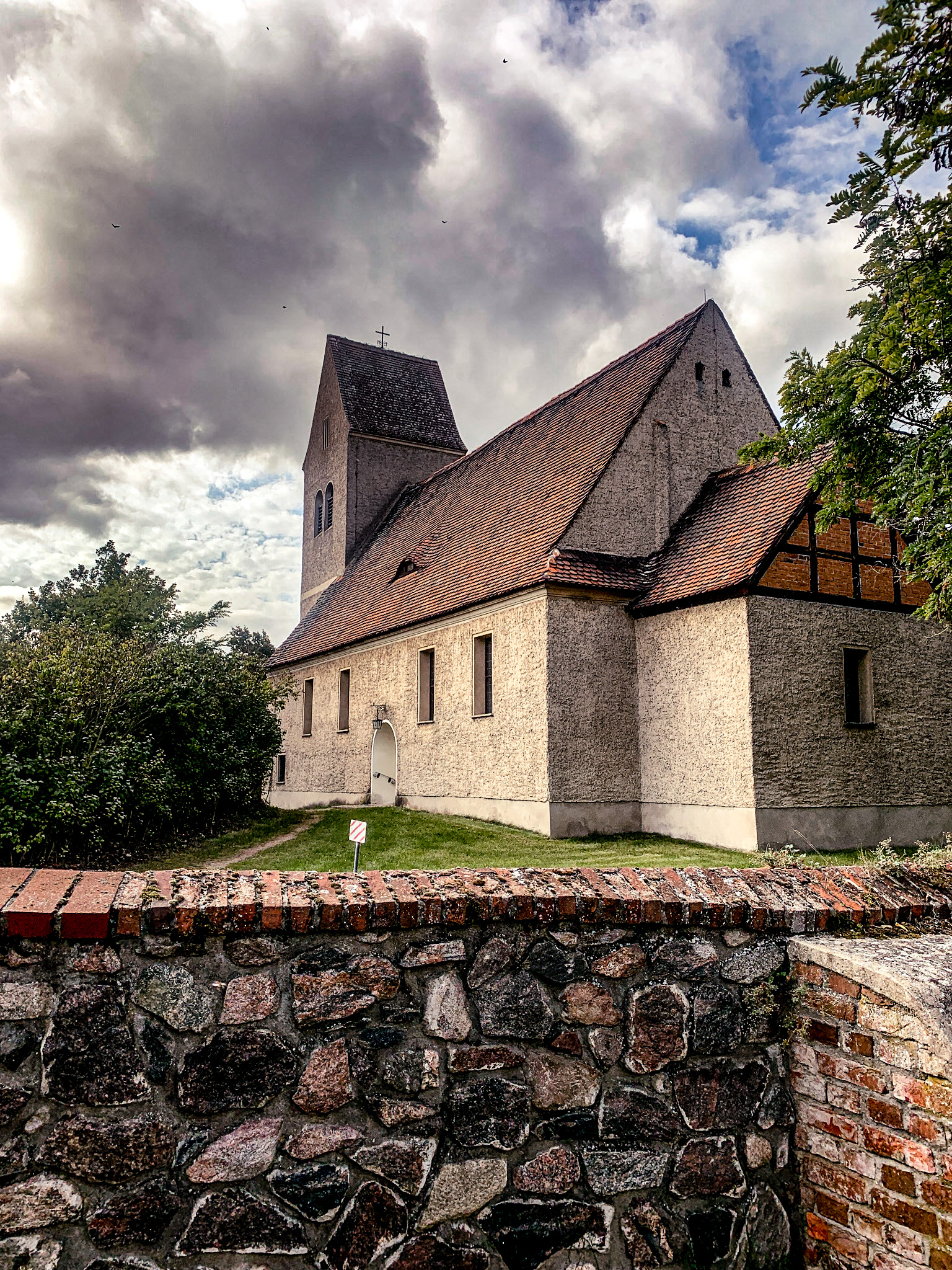 Der Weg führt weiter in den Ort hinein, an der erhöht stehenden Kirche vorbei, deren Außenansicht ihrer inneren Schönheit nicht gerecht wird, hin zu einer Holzbrücke. Auf der anderen Seite geht rechts der Uferweg ab. Diesem folgst du vorbei am Fischer, durch einen lichten Wald mit uralten Bäumen bis schließlich rechts ein Weg zum See abgeht.