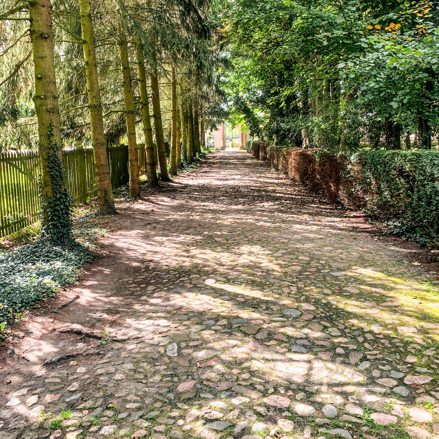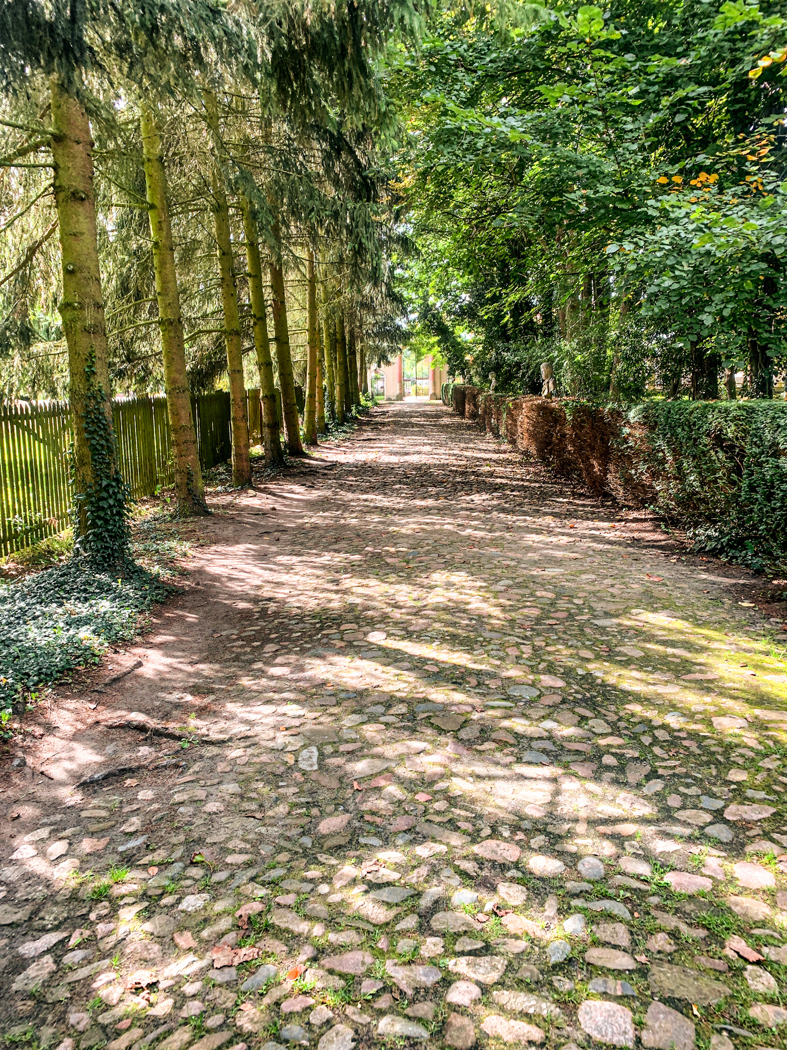Über einen uralten mit Feldstein gepflasterten Weg geht es weiter, vorbei an marmornen Statuen durch das schmiedeeiserne Tor in den Ort. Vorbei am Bauernmuseum, hier gibt es die Möglichkeit in die Museumsschänke einzukehren, hinüber zum Seechen. Das Seechen ist ein schmaler, Schilf bestandener See, an dem ein Feldweg entlang zu den Ungeheuerwiesen führt.