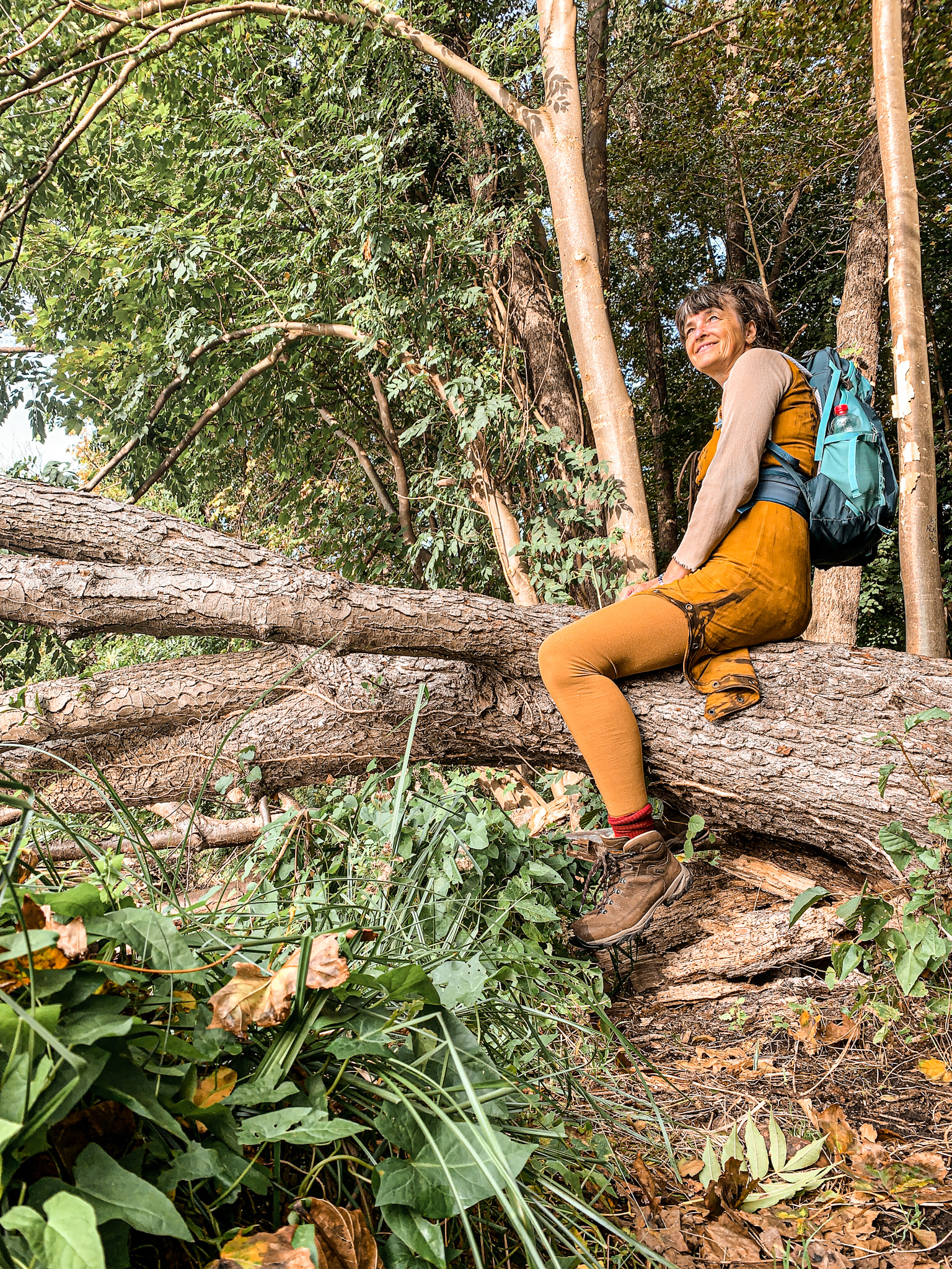 Der schmale Pfad schlängelt sich direkt am Wasser entlang, er ist feucht, wurzelig, mit einigen kleinen Hindernissen, wie umgestürzten Baumstämmen, die es zu überwinden gilt. Ich verrate es Dir, dies ist mein absolutes Lieblingsstück der Route. Zwischen Gräsern und Schilf züngelt das Wasser des Sees an meinen Schuhen. Es riecht nach modriger Erde, ein Geruch, den ich schon seit Kindertagen liebe, brackig, eine eigene Welt zwischen Wasser und Ufer. Ich nutze jede Gelegenheit, mich auf einen Baumstamm zu schwingen, die Füße baumeln zu lassen und das Szenario zu beobachten.