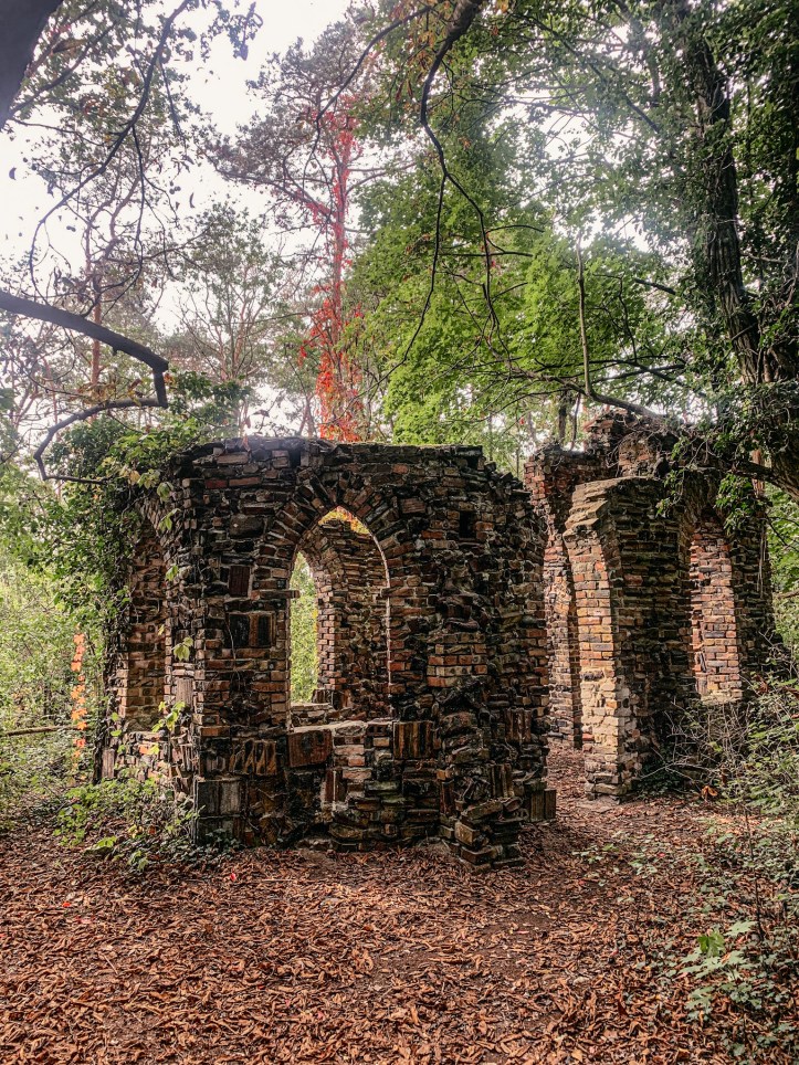 Bei der Ruine handelt es sich nicht um die Reste einer mythenbehafteten gotischen Backsteinkapelle sondern wahrscheinlich um eine extra erbaute Filmkulisse aus den 1950er/1960er Jahren. Das sieht man ihr natürlich nur auf den zweiten Blick an und genau das, macht sie für mich zu einem zauberhaften Fotospot und einem verwunschenen Lost Place.