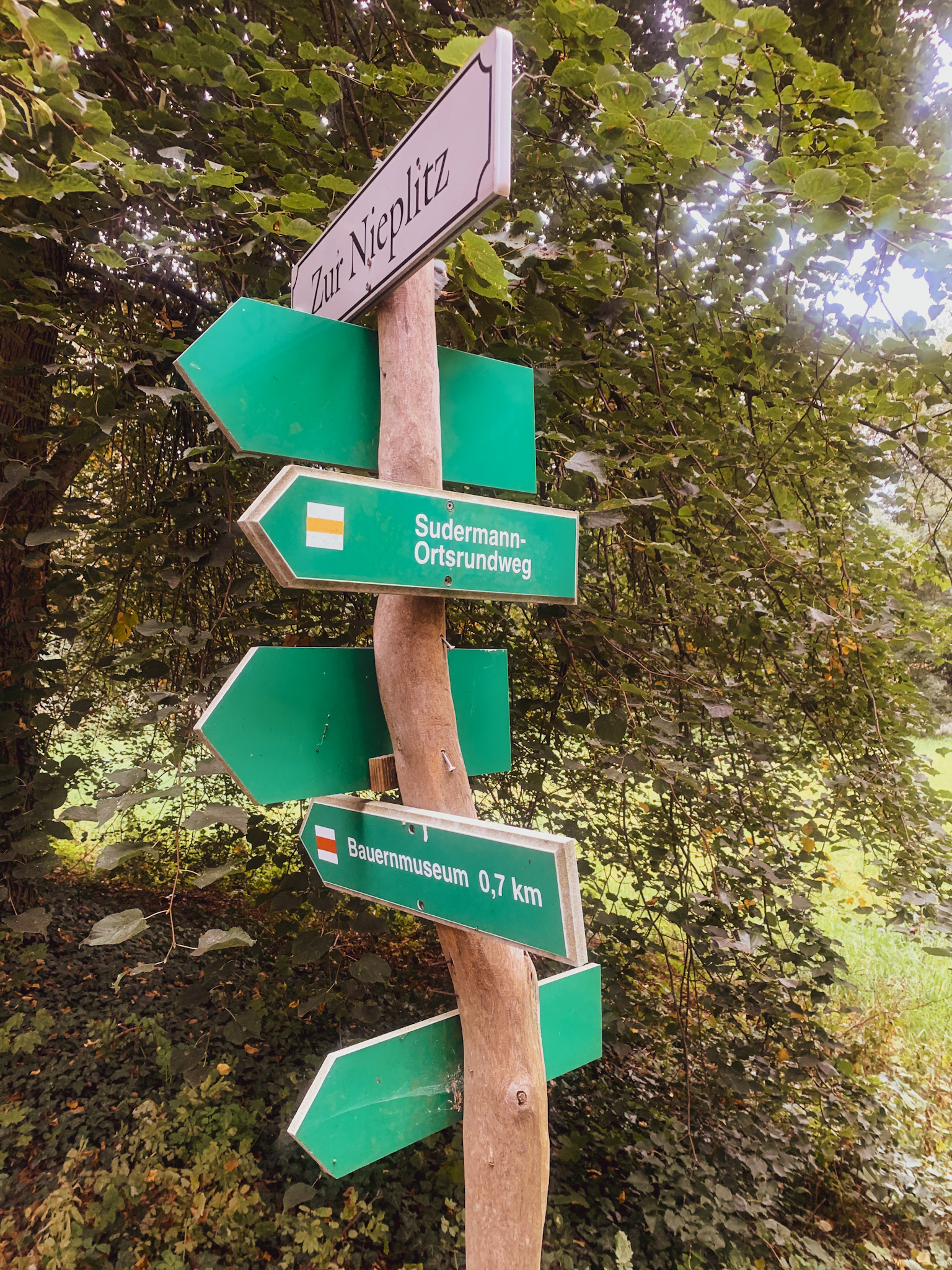 Von meinem Startpunkt aus aus bietet sich der Weg zum Seechen, der Ruine und dem Aussichtsturm als erstes an. Er biegt an der Dorfstraße, beim Fischer, rechts ein. Übrigens sind im gesamten Ort die Highlights top ausgeschildert.