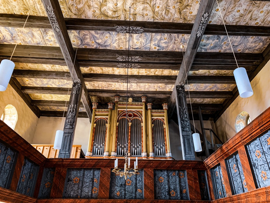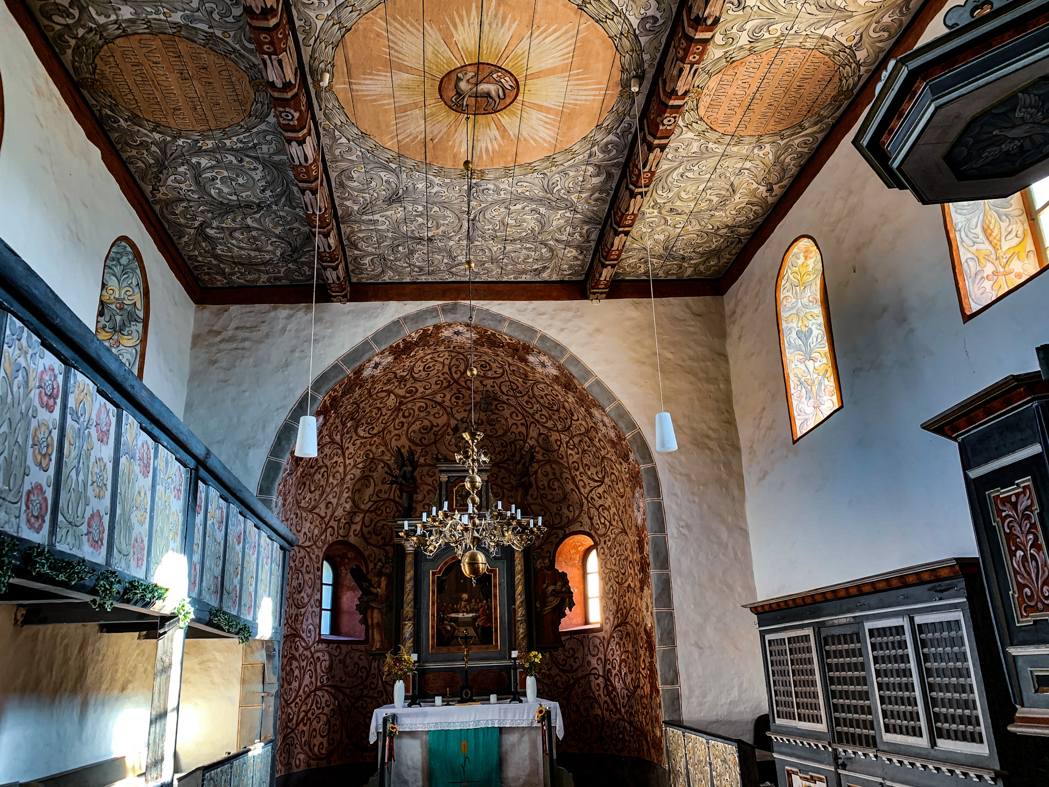 Die spätromanische Feldsteinkirche stammt aus der ersten Hälfte des 13. Jahrhunderts und wurde später erweitert. Ihre Besonderheit ist die reiche Bemalung der Wände und der Decke mit floralen Mustern aus dem 18. Jahrhundert.