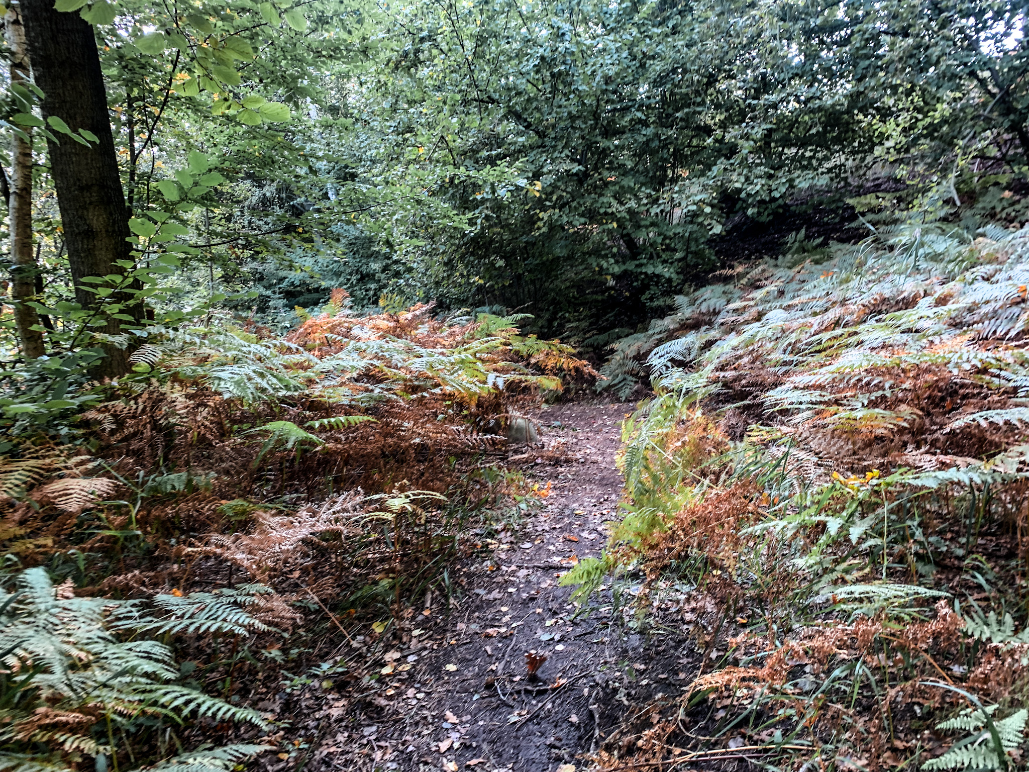 Dieser Abschnitt ist meiner Meinung nach der schönste der Wanderung. Der wurzelige Waldweg wird enger, er schlängelt sich zwischen den eiszeitlich geprägten Erhebungen des Hohen Flämings hindurch. Im Herbst ist er gesäumt vom bunten Laub der Buchen, deren Blätter im Sonnenschein in den verschiedensten Brauntönen leuchten. Über einen langen Holzsteg geht es durch das sumpfige Quellgebiet vorbei an typischen Gewächsen wie Schwarzerlen und Schilf. Immer wieder taucht rechtsseitig das Planetal mit seinem üppigen Pflanzenbewuchs auf. Die feuchten Wiesen dienen dem geschützten Mädesüß als Lebensraum. Im Juni erscheinen die weißen, honigduftenden Blüten, die ich schon für Tee getrocknet und als Marmeladenzusatz genutzt habe. Es geht doch nichts über den Duft von Mädesüß. Ein Stück weiter laufe ich durch meterhohes Adlerfarn dessen leuchtende Gold- und Brauntöne mir schier den Atem rauben.