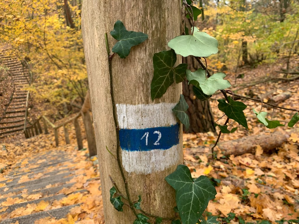 - ➸ Wanderzeichen: eine 12 auf weiß blau weißem Grund