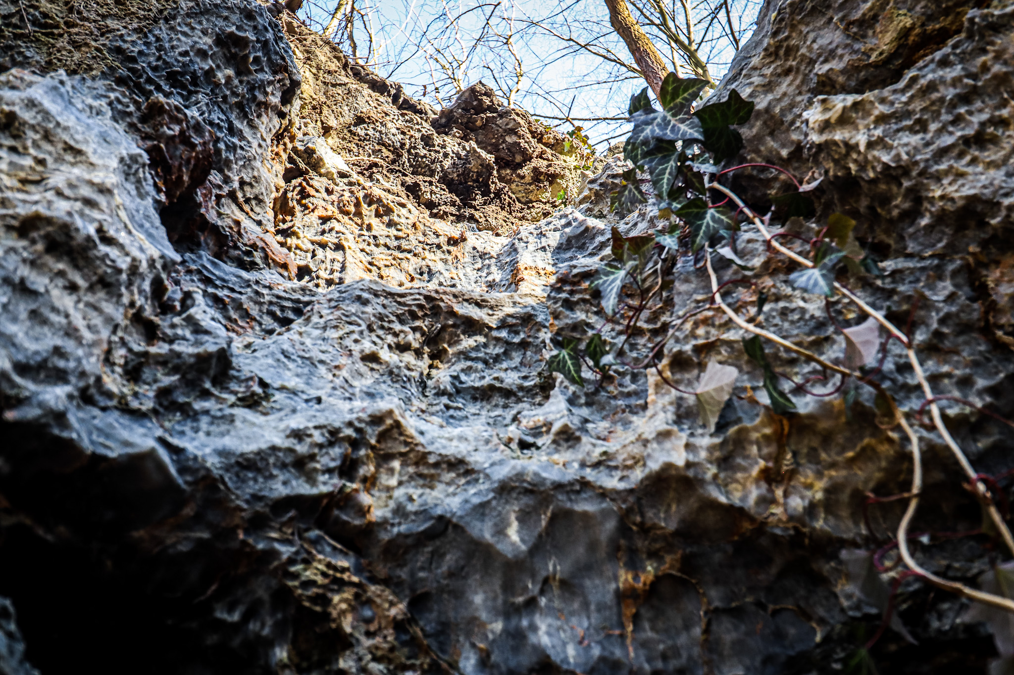 1958 stellte man den Gipsabbau ein, danach blieb das Gebiet sich selbst überlassen, die Tiefbauten füllten sich mit Wasser, seltene und geschützte Pflanzen und Tiere fanden Heimat, eine Idylle entstand, die ich so in Brandenburg noch nicht gesehen habe. Die zerklüfteten, mit kleinen Höhlen durchsetzten Felsen, Farne und Moose, neben Efeu und glitzernden Steinen, die im Sonnenlicht funkeln, bizarre Steinformationen, sie sich weit in die Seen hineinziehen, all das raubt einem schier den Atem vor Schönheit.