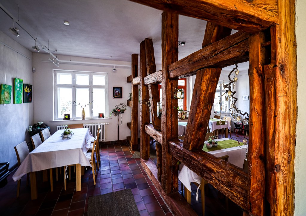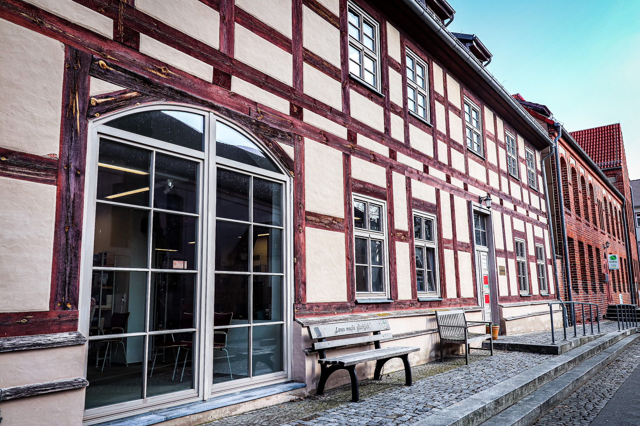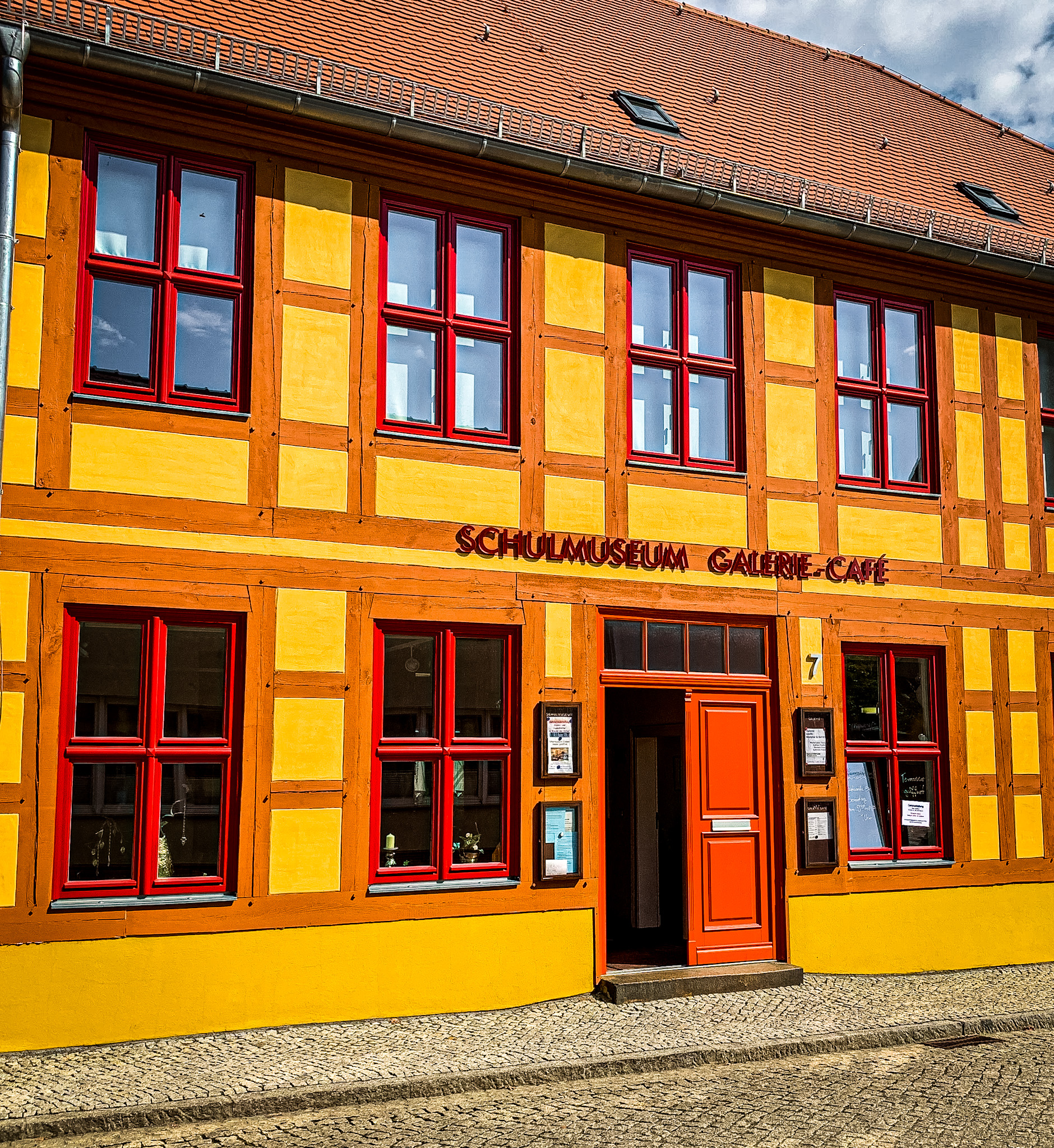 Auf meinem Weg in die Stadt entdecke ich in einem wunderschön restaurierten Fachwerkhaus das Galerie Café und Schulmuseum.
