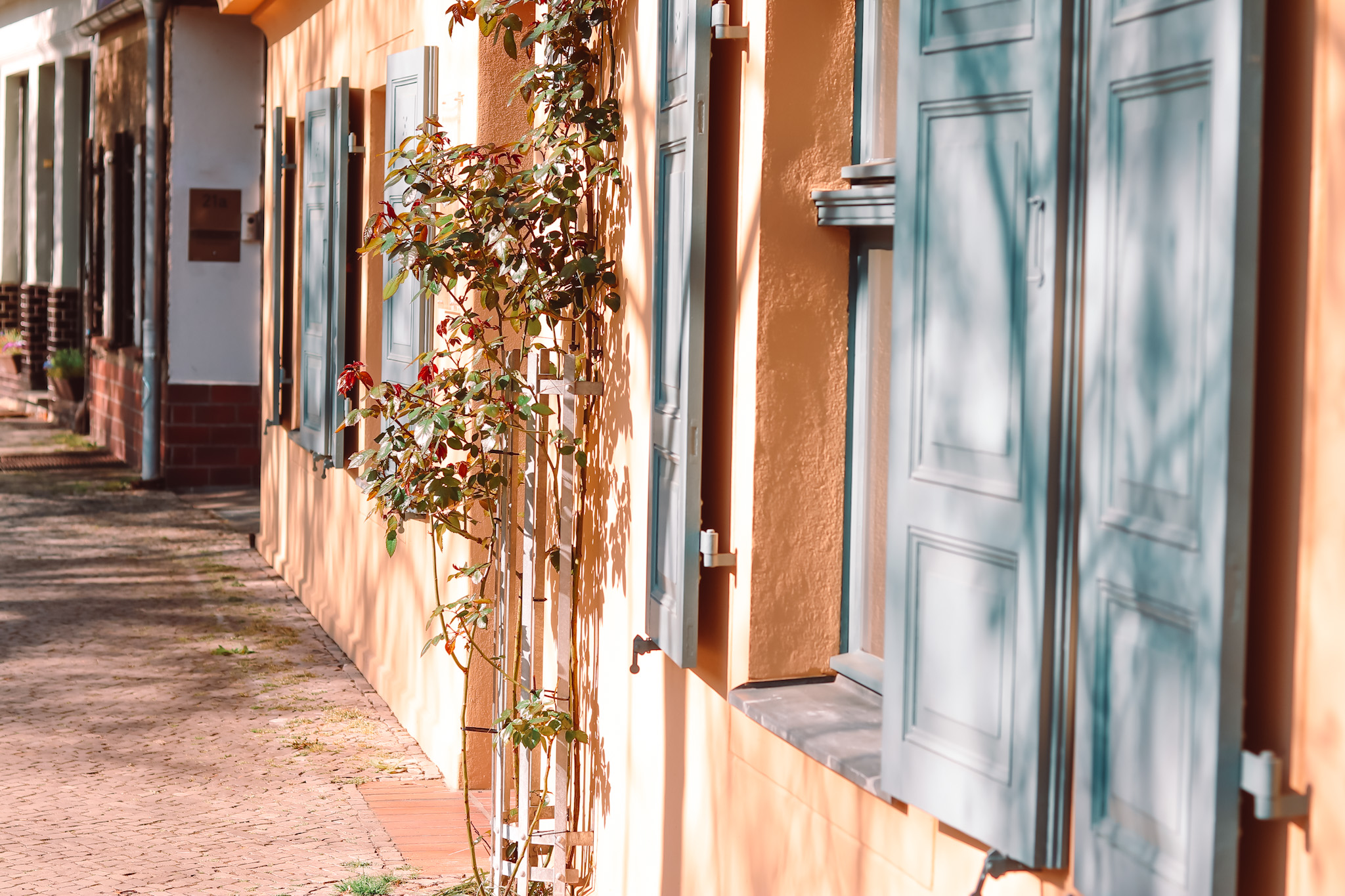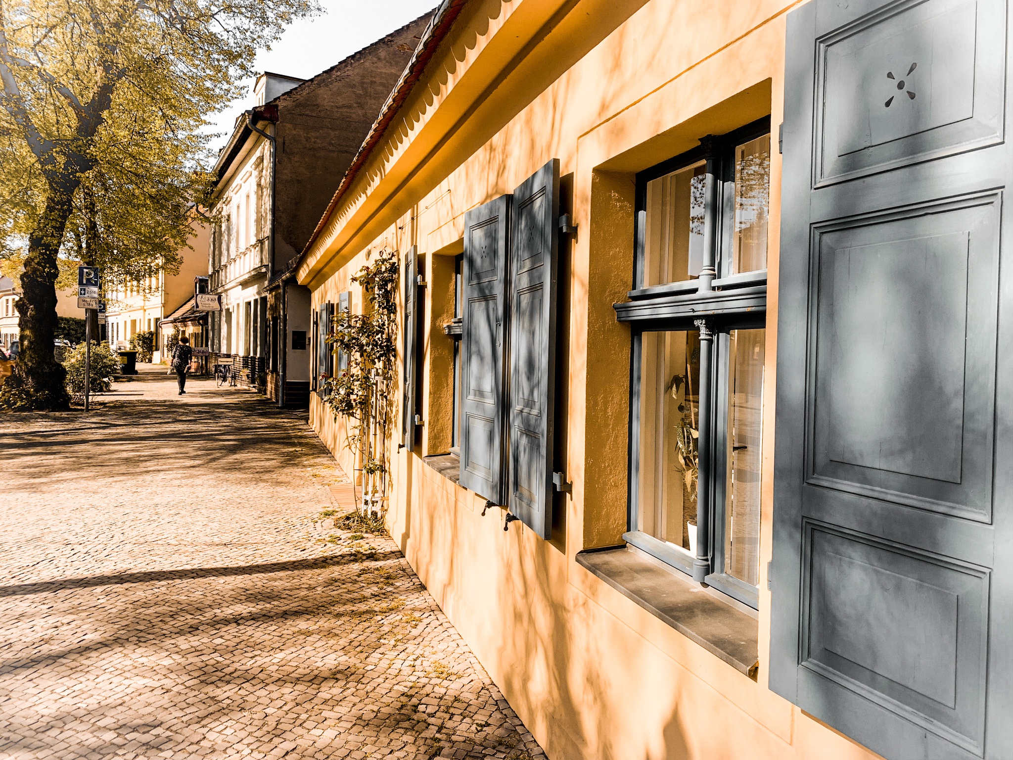 Häuser aus der Gründerzeit und zahlreiche eingeschossige, aufwändig restaurierte Gebäude schmücken die Straße, in der man sich in eine andere Zeit zurück versetzt fühlt. Zwei schmale mit Kopfstein gepflasterte Gassen führen hinunter zum Ufer der Dahme, hier hast du einen wunderbaren Blick hinüber zur Schlossinsel.