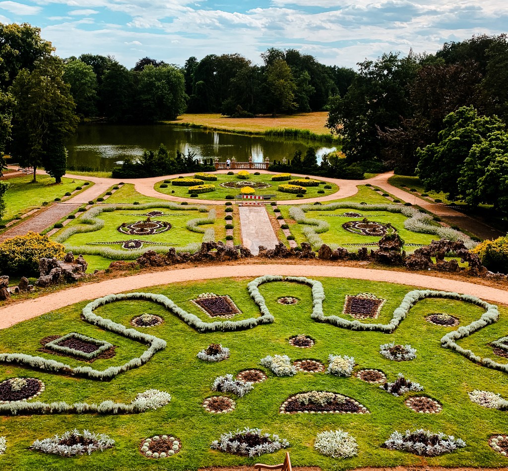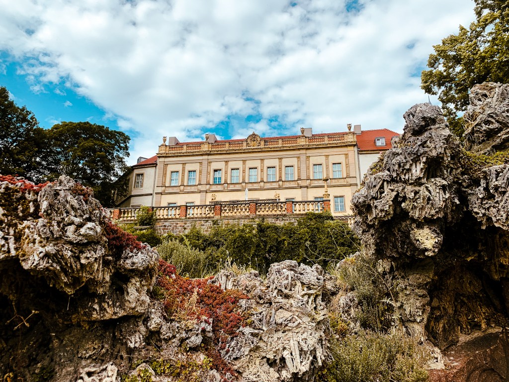 Park Wiesenburg – gilt als das bedeutendste Gartendenkmal zwischen Potsdam und dem Dessau – Wörlitzer Gartenreich und stand schon allein deshalb seit langem auf meiner Bucket List. Tipp: nimm unbedingt zuerst den Weg über die große Freitreppe nach oben. Von der Terrasse aus hast du den besten Blick über das in Ostdeutschland einmalige Parterre mit seinen Teppichbeeten und kugelförmig geschnittenen Fichten.