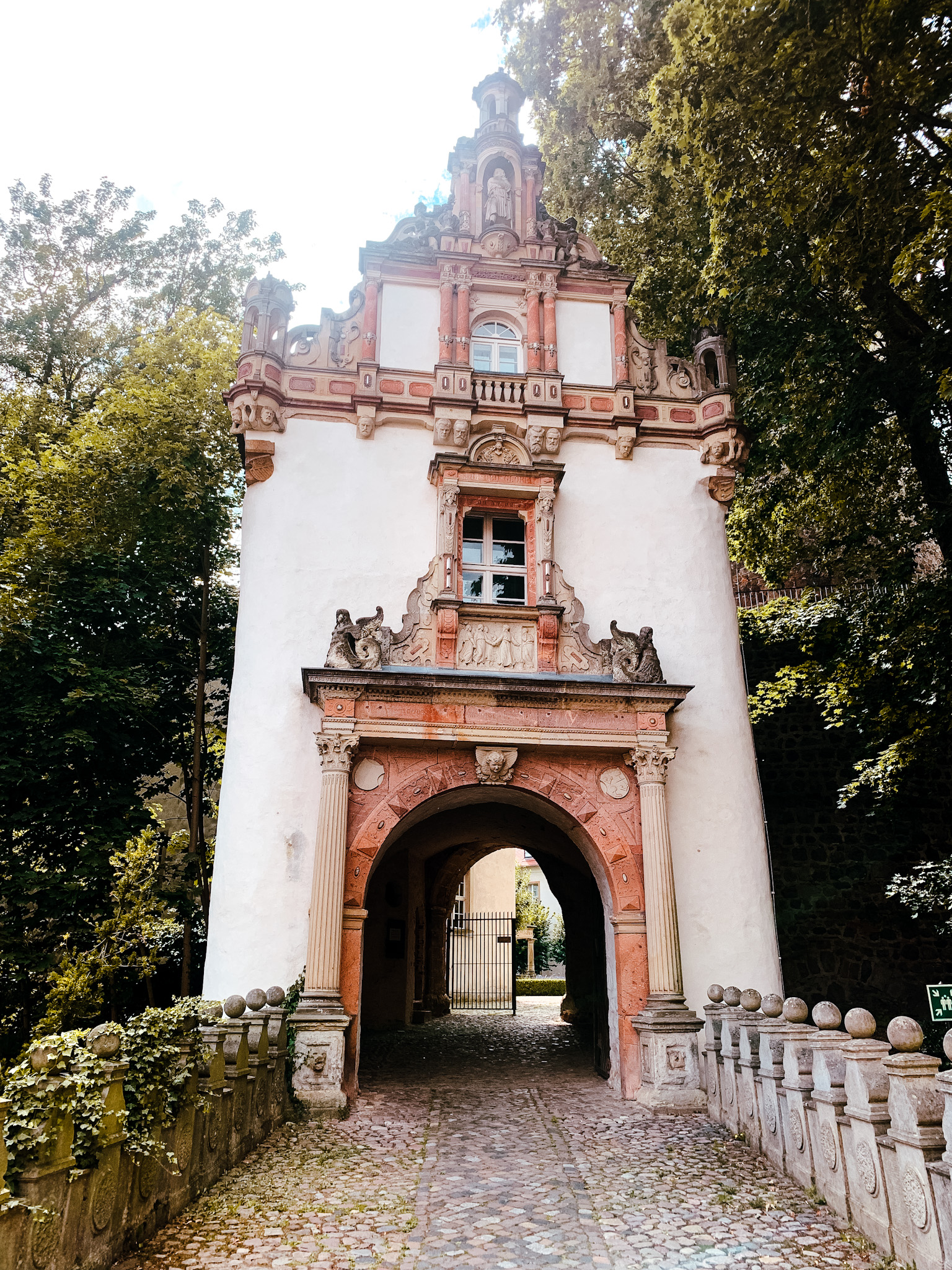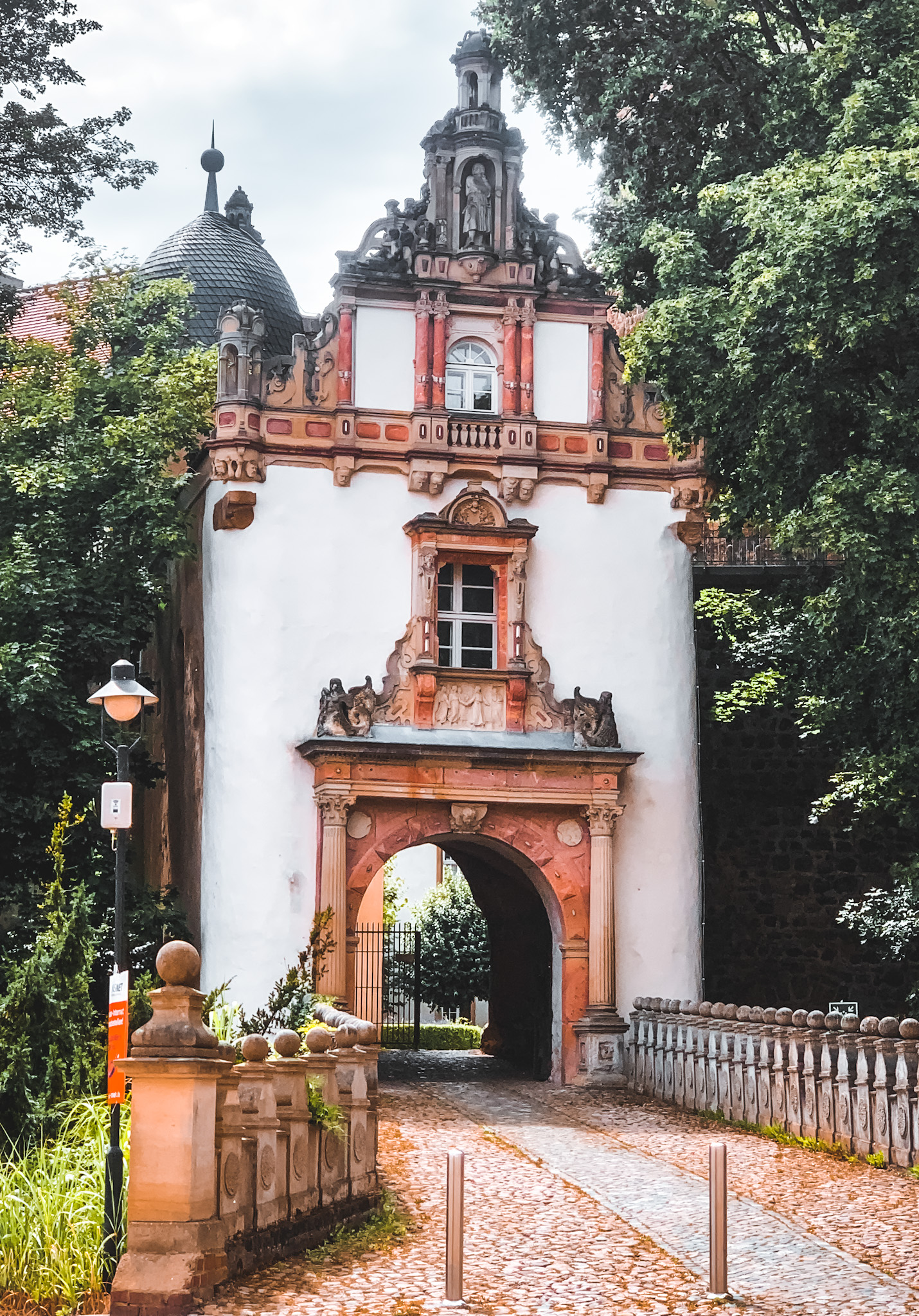 Torhaus – auch das einst schlichte Torhaus wurde im 19. Jahrhundert im Stil der Neorenaissance umgebaut und reichlich verziert. Es ist mein heimlicher Favorit der Anlage, mit steinerner Brücke als Zuwegung, ein schöner Fotospot und ein echter Blickfang der sich märchenhaft vom Rest des Schlosses abhebt.