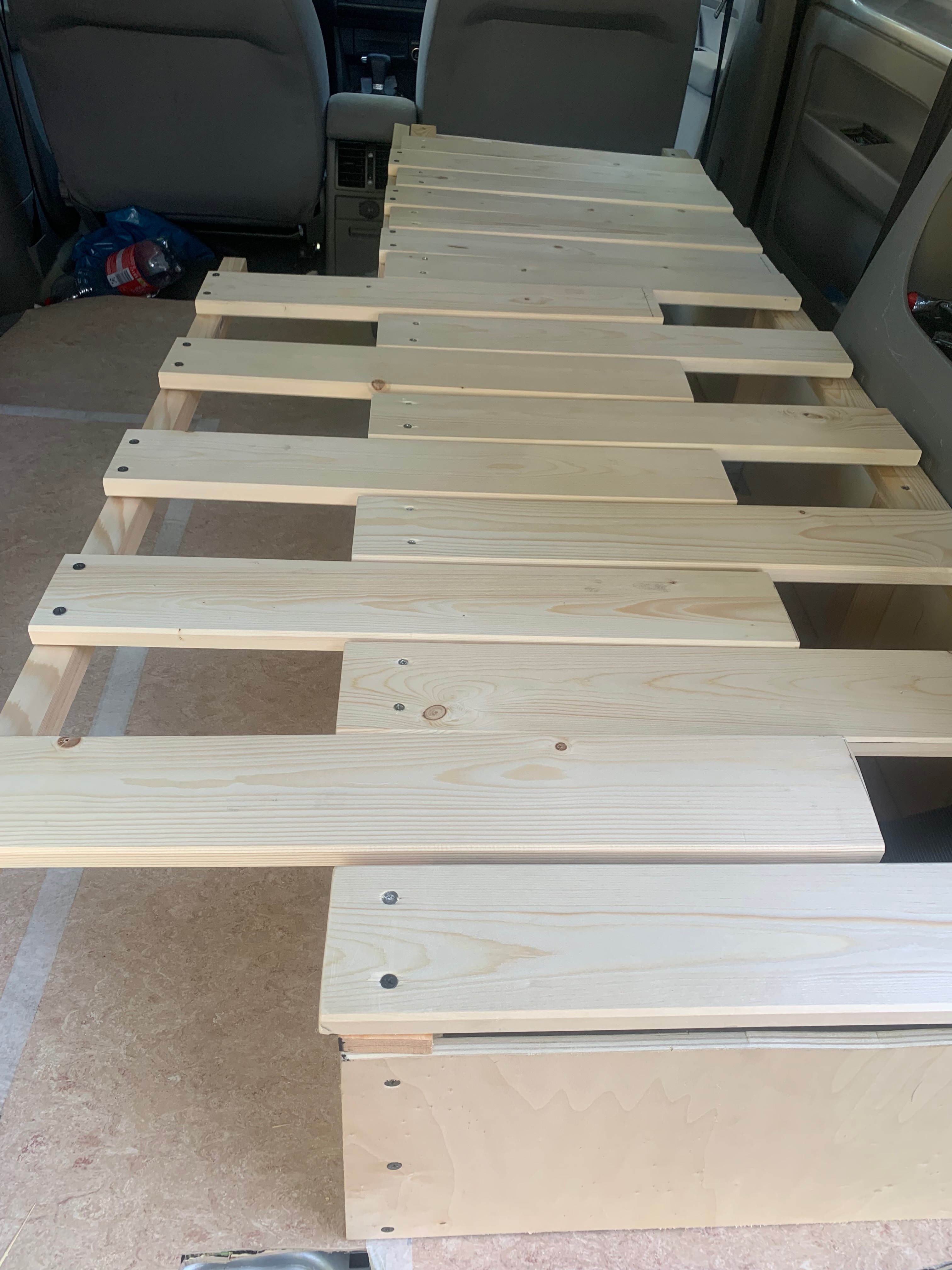 Da mein Caddy ca 1,74m Platz für die Kiste bietet, muss zum Schluss eine Bettverlängerung angebaut werden. Eine zusätzliche Herausforderung.