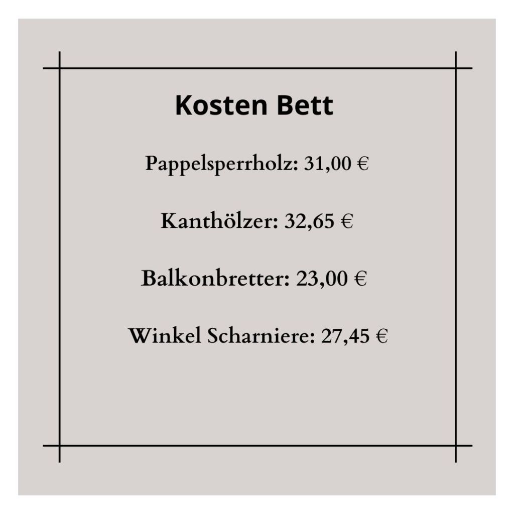 In den Kosten fehlen die Kanthölzer, die ich noch hier hatte und Schrauben, denn auch davon habe ich reichlich Vorrat.