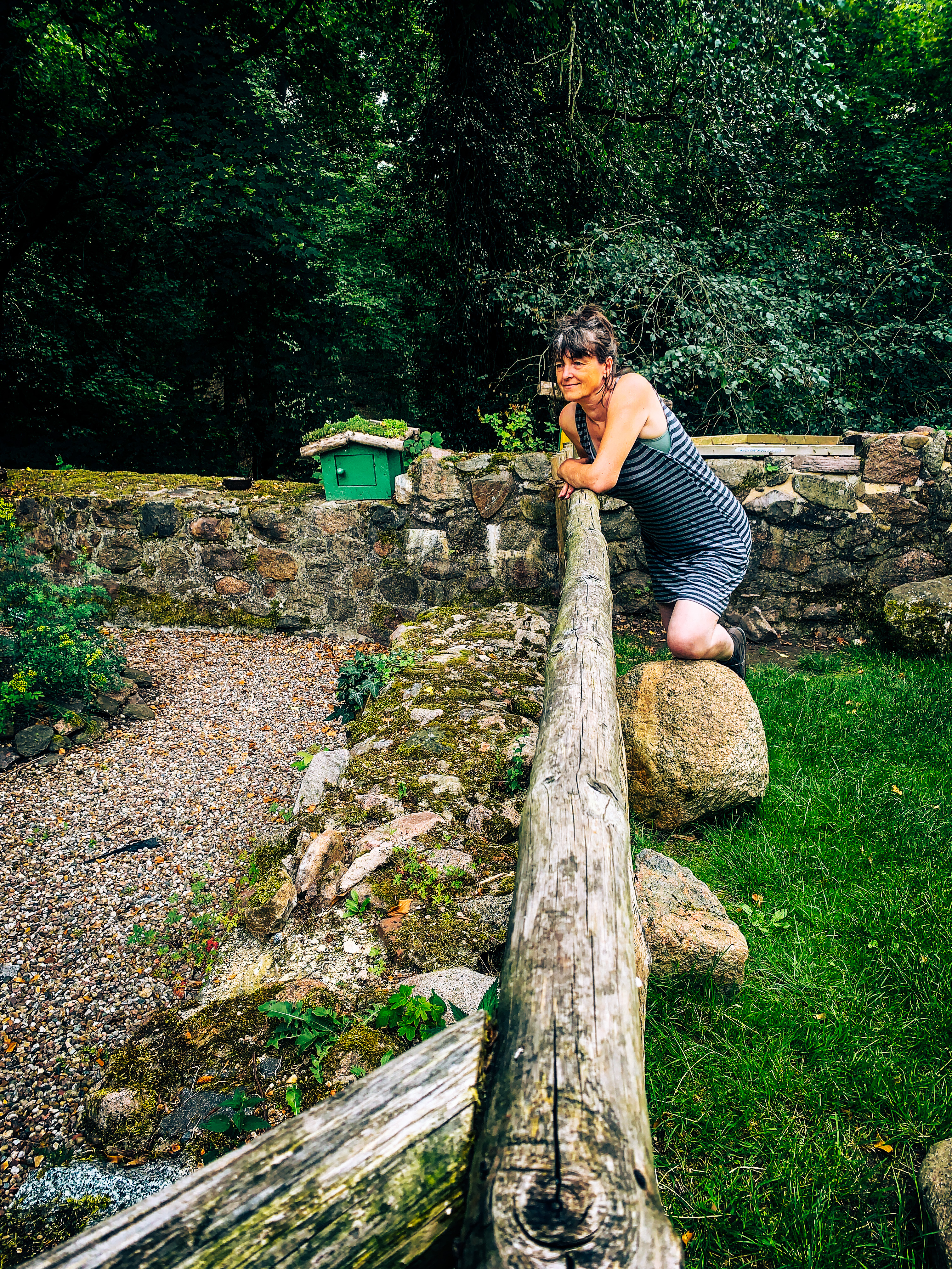 Von der Kirche führt ein Weg an der Feuerwehr und der alten Wassermühle vorbei in den Wald. Hier kannst du ein wenig Kneippen. Der flache Bach, der zur Plane, die hier ihr Quellgebiet hat gehört, bietet sich an, um die Füße ins Wasser zu stecken. Ich mag diese Art den Körper fit zu halten sehr.
