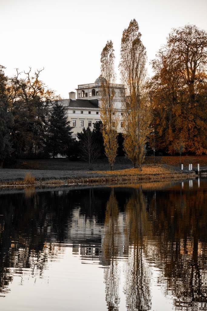 Die Villa Hamilton ist einem Casino in Neapel nachempfunden und spiegelt sich zum Sonnenuntergang herrlich im Wasser.