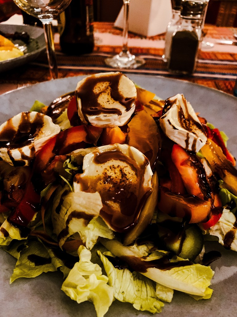 Passend zum Herbst gab es viele Pilzgerichte. Ich aber entschied mich für den warmen Ziegenkäse an Salat.