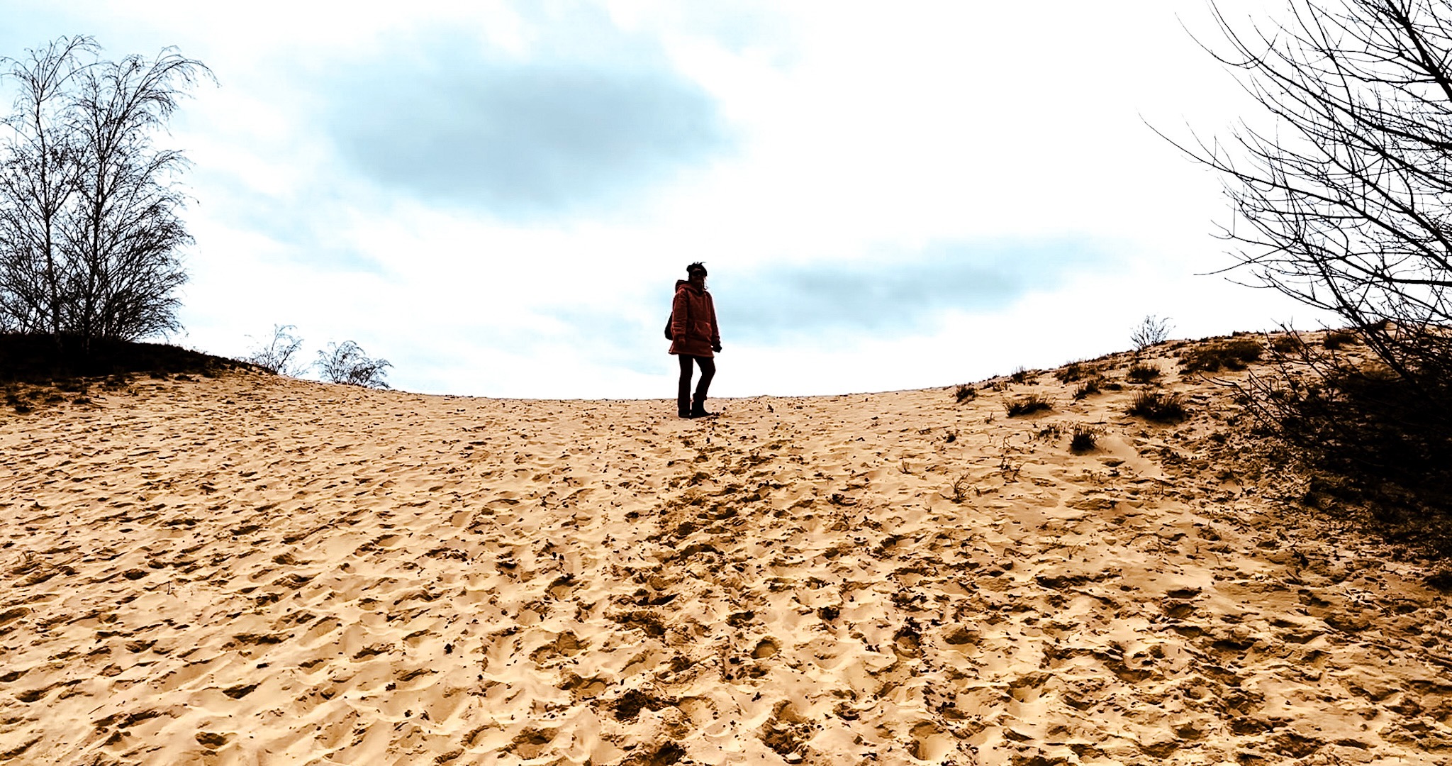 Mein Brandenburg Roadtrip führt mich in den Landkreis Teltow Fläming. Die letzte Eiszeit hat dort, im Zinnaer Forst, die mit 9 Hektar größte Binnendüne des Landes Brandenburg hinterlassen, die man heute auch wieder erwandern kann. Vom Parkplatz aus starte ich meine Wanderung über den ehemaligen Truppenübungsplatz zur Düne bei Sturm. Gut, man könnte sich auch besseres Wetter aussuchen aber am Ende stelle ich fest, dass es mit den vorbeiziehenden Wolken und diesem riesigen Sandhaufen echt ganz mystisch war.