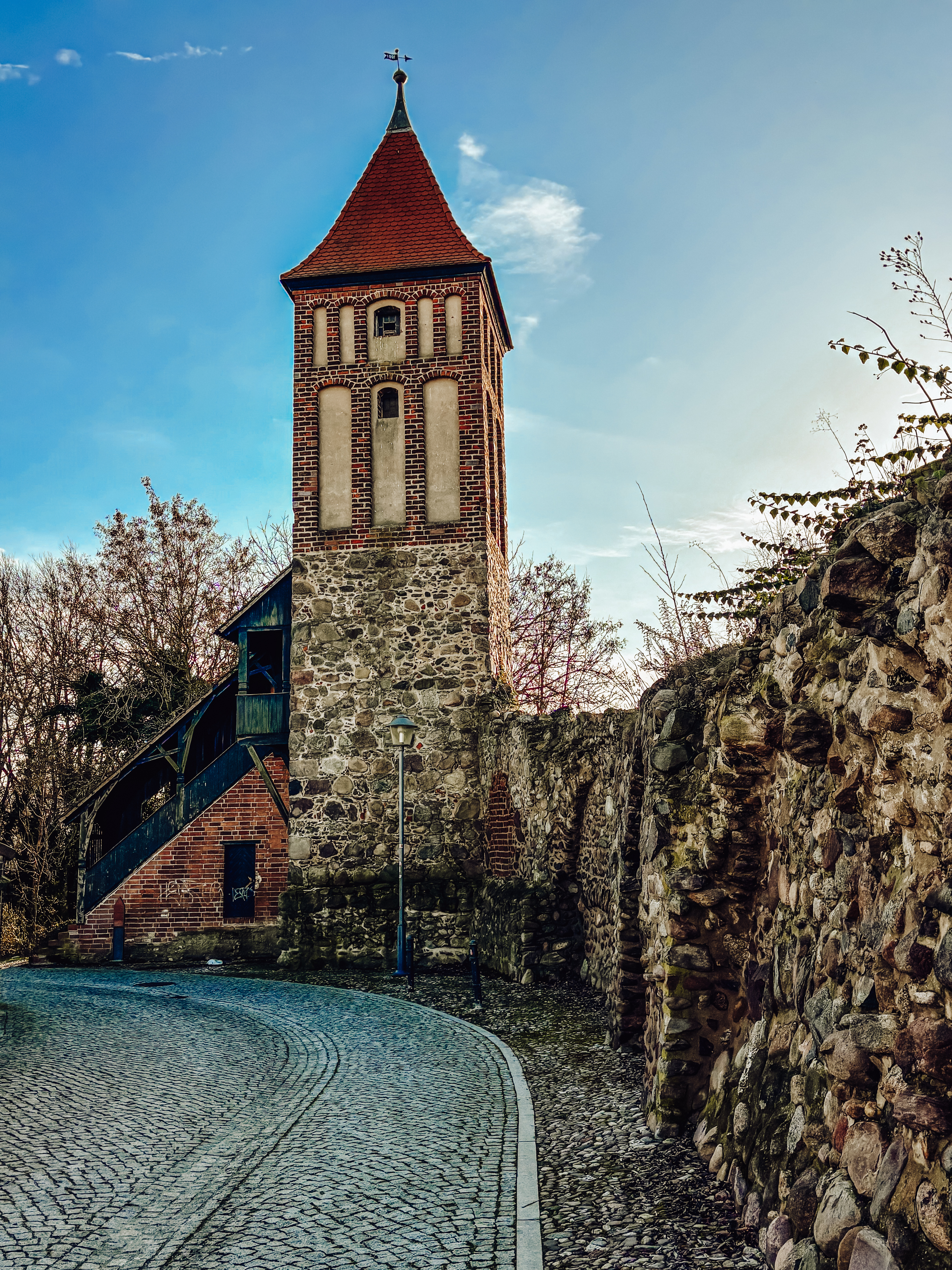 Es gibt eines der drei Stadttore Jüterbogs, auf das ich mich besonders gefreut habe, denn es repräsentiert sozusagen alles, was ich mit dem Mittelalter verbinde. Es ist das besterhaltene der drei Tore und wird logisch, gerne fotografiert. Sein Name deutet heute noch auf den alten Ort Damm hin, der hier endete oder begann. Manchmal nennt man es aber auch Frauentor, denn auch das Frauenkloster steht nicht weit entfernt.