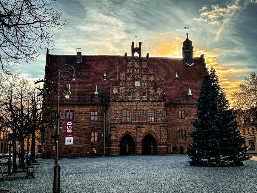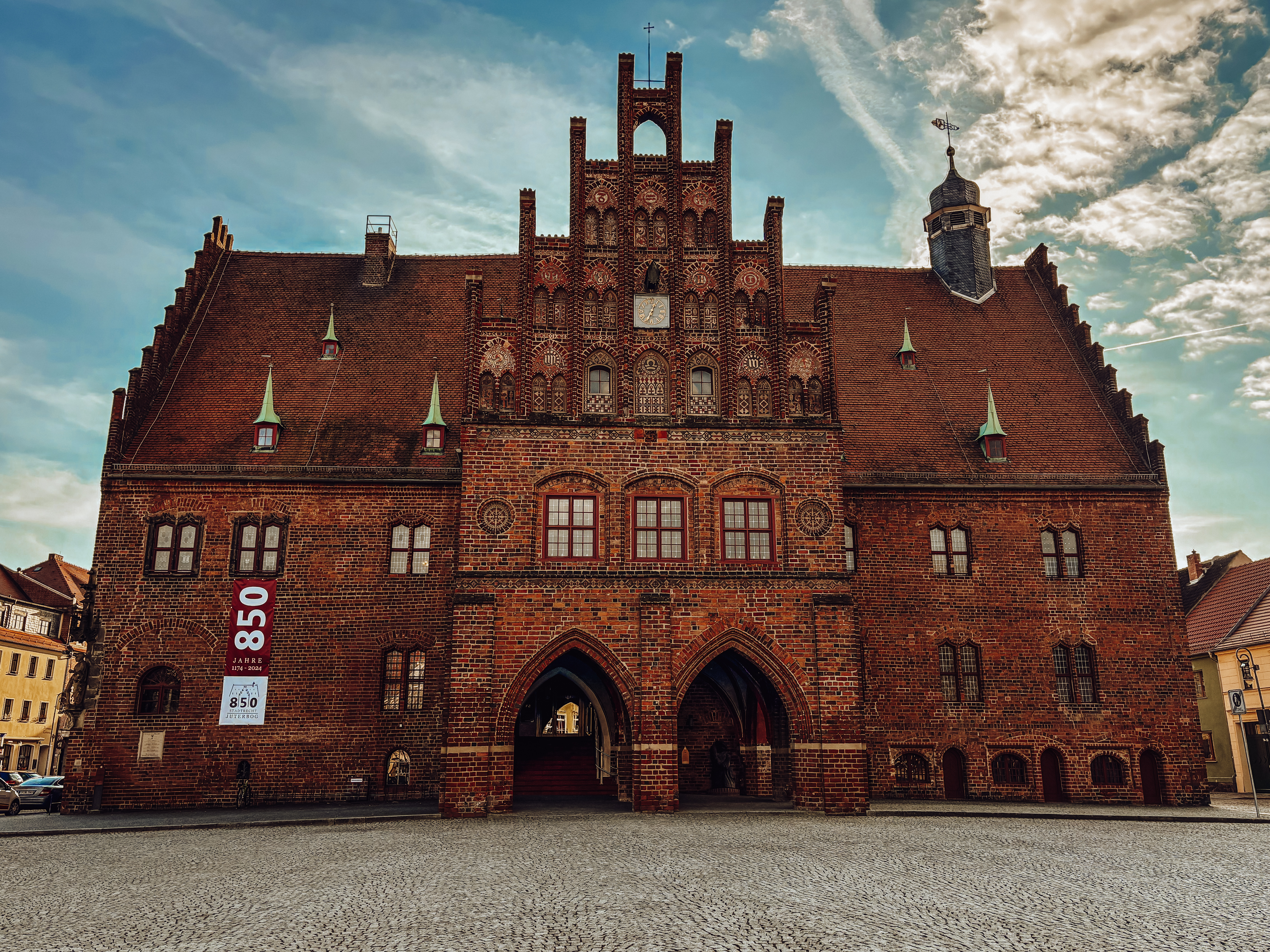 Jüterbog ist nach Brandenburg an der Havel die zweitälteste Stadt im Land Brandenburg, seit 1007 gibt es Aufzeichnungen, 1174 gab es das Stadtrecht. Natürlich brauchte es da auch ein Rathaus. Und was für ein schönes, schaut euch den Giebel an, er ist einfach nur ein Träumchen.