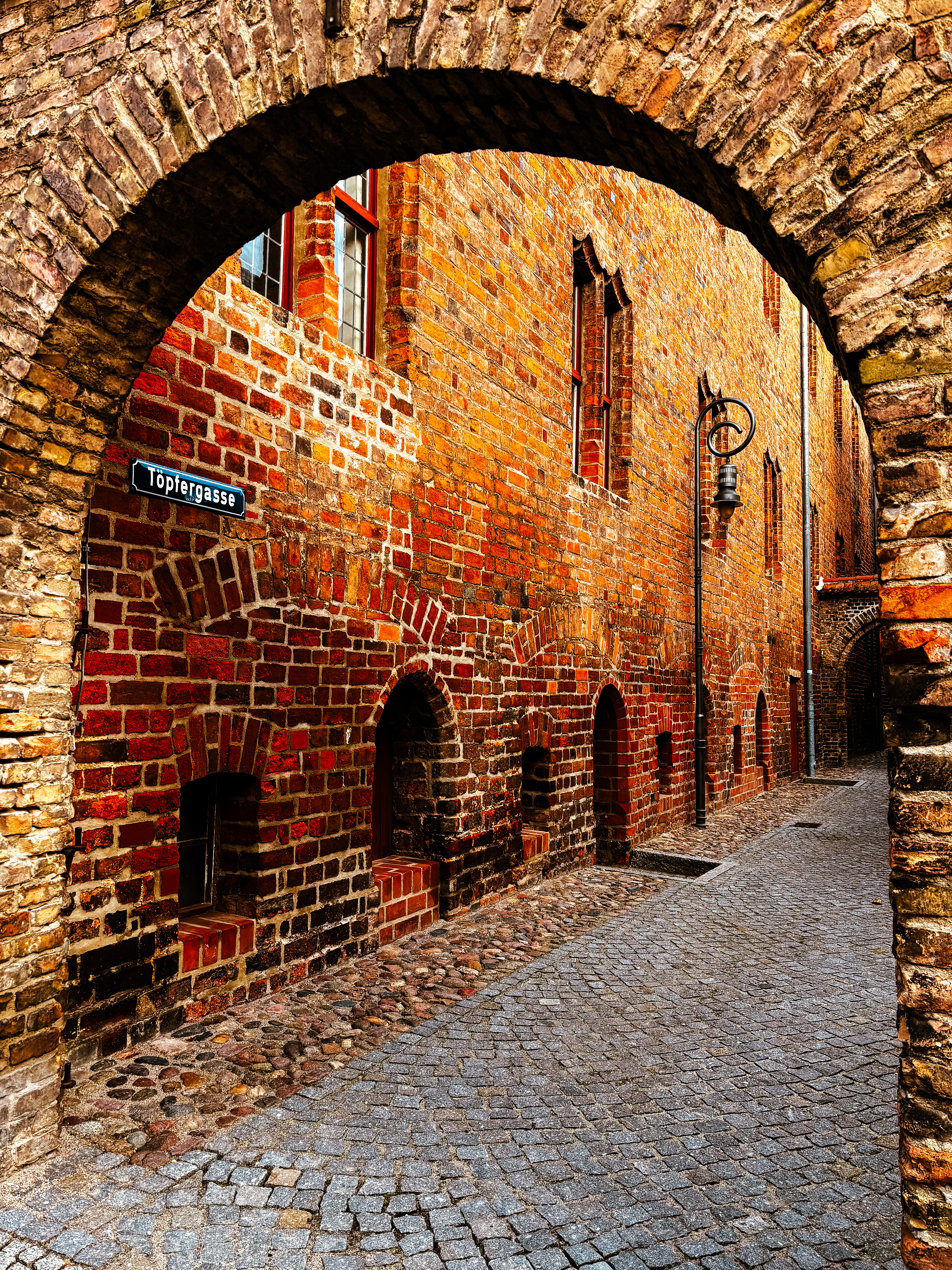 Dahinter gelangt ihr in die Töpfergasse, die architektonisch mein Highlight ist. Töpfer gibt es dort nicht mehr aber einen Blick auf das schöne Fachwerkhaus, das Blumberghaus mit den Sprüchen, an der Ecke zur Pferdestraße.