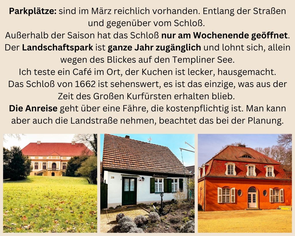 Am Templiner See, nahe Potsdam steht ein weiteres besonderes Barockschloß der Hohenzollern in Brandenburg. Es ist März als ich es besuche, eine gute Zeit, um den Touristenmassen zu entgehen. Zudem bin ich unter der Woche da und kann nicht rein aber das macht nichts, denn wie ihr wisst mag ich die Architektur außen und die angrenzenden Parks.