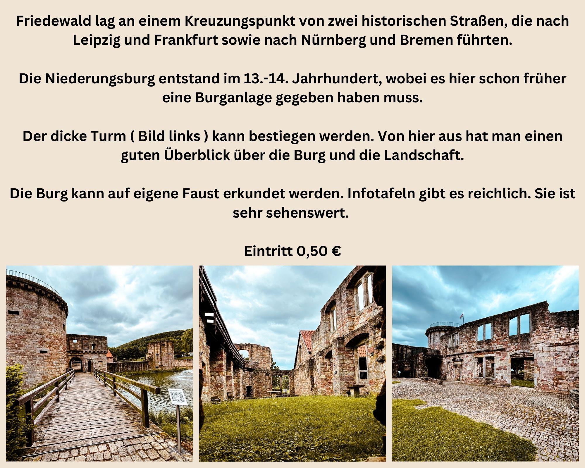 In der Gemeinde Friedewald, im östlichen Landkreis Hersfeld Rothenburg in Hessen ist eine Burgruine zu finden, die schon lange auf meiner Liste steht. Vielleicht habt ihr den Namen Friedewald schon einmal gelesen. Die Ruine der Wasserburg Friedewald liegt nahe der gleichnamigen Autobahnausfahrt auf der A4.