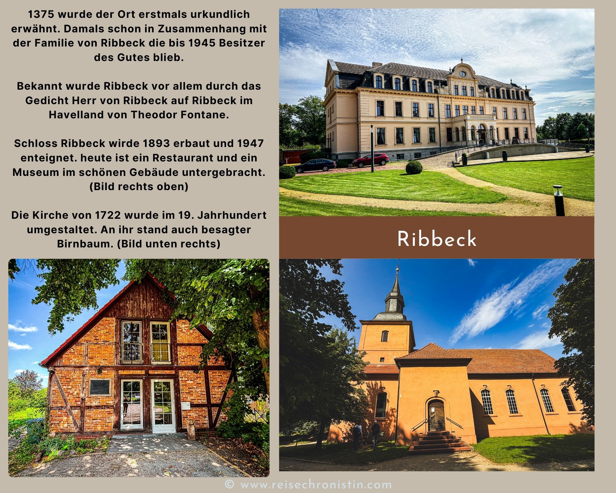 Mein nächster Stopp auf der Tour historische Stadtkerne Brandenburg führt mich ins Havelland und zwar nach Ribbeck, welches mittlerweile ein Teil der Stadt Nauen ist. Das war nicht immer so und in diesen alten Zeiten, kam der Herr Fontane vorbei und dichtete kurzerhand seine Verse vom Birnbaum und dem Herrn Ribbeck auf Ribbeck im Havelland. Wahrscheinlich ahnte er damals nicht, dass dieses Gedicht das kleine Dorf bis über die Grenzen Brandenburgs hinaus bekannt machen sollte.