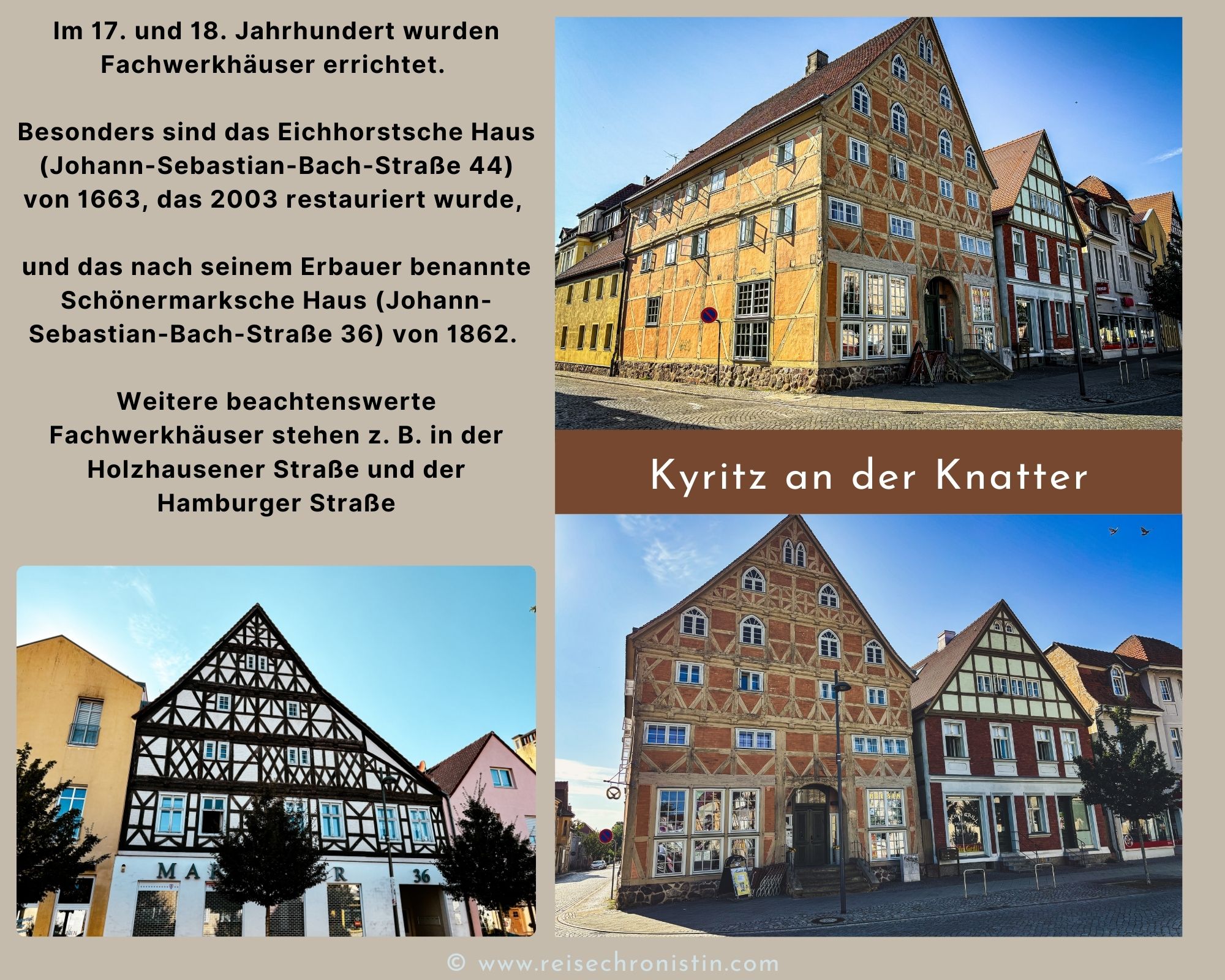 | Sehenswertes in Kyritz • Marktplatz mit Rathaus • Posthalterei gegenüber vom Rathaus • Fachwerkhäuser in allen Straßen der Altstadt • Kirche • Kloster mit Klostergarten • Budenhäuser • Rosengarten an der Stadtmauer • Stadtmauerrundweg • Brunnen mit der Stadtgeschichte am Markt |