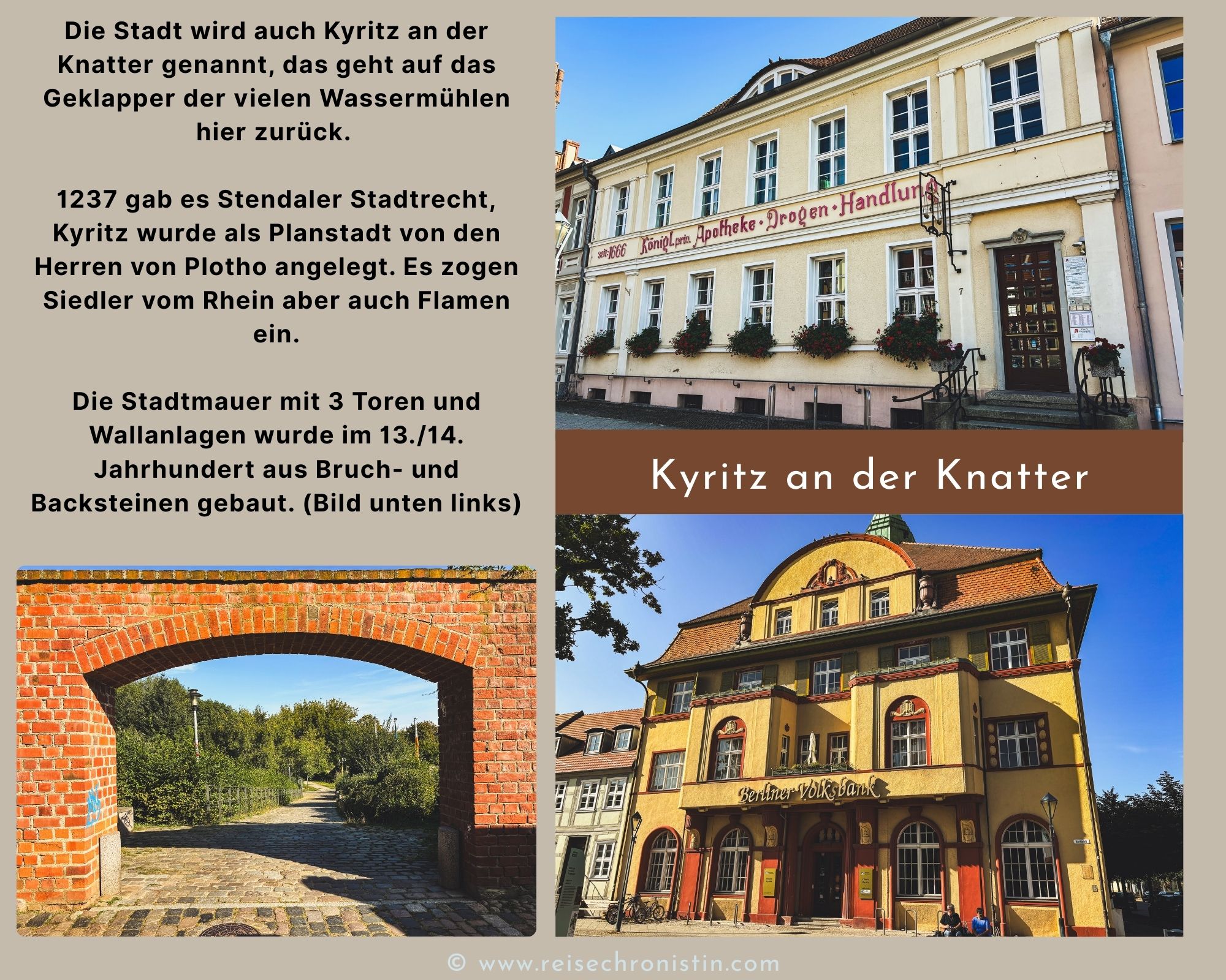 Kyritz ist die nächste Stadt auf meinem Roadtrip historische Stadtkerne Brandenburg. Auch sie liegt unweit von Wusterhausen/Dosse im schönen Landkreis Ostprignitz Ruppin. Ich bin im Nordwesten von Brandenburg unterwegs, im Gebiet des Gau Chorizi, auf den Kyrica, die Siedlung bei den Büschen, wie sie im slawischen hieß und damit der Name Kyritz zurück gehen. In diesem Artikel zeige ich euch die Sehenswürdigkeiten in der Stadt Kyritz an der Knatter.