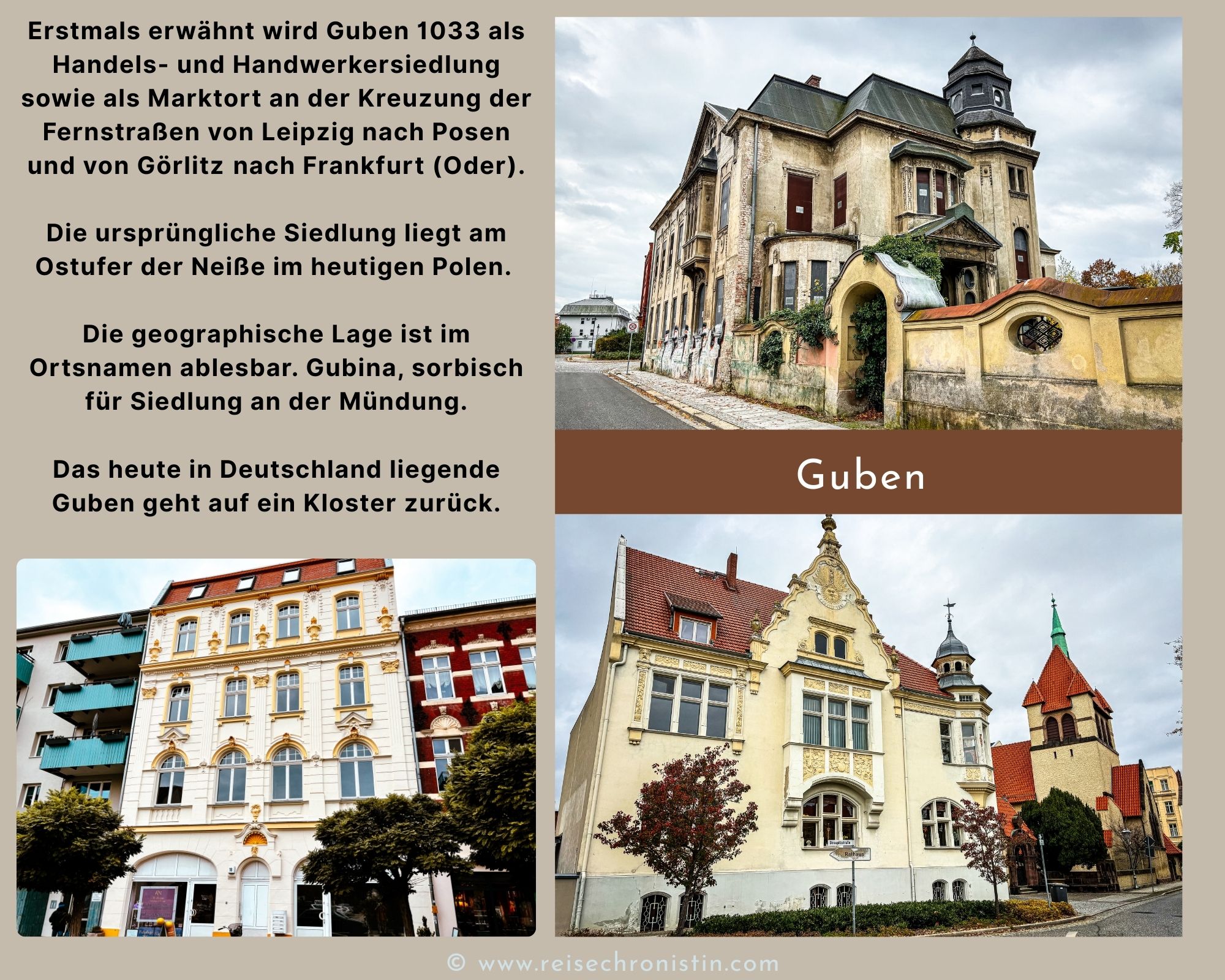 Die nächste Station auf meiner Deutschlandreise gehört nicht zu den historischen Stadtkernen in Brandenburg. Dennoch möchte ich mir die Stadt Guben ansehen, denn seit dem Ende des zweiten Weltkrieges gibt es neben Guben auch noch Gubin, auf der polnischen Seite. Schnell stelle ich fest, dass man die beiden Städte unbedingt zusammen besuchen sollte, da die Entstehung der Stadt und die Sehenswürdigkeiten von Guben auf beiden Seiten der Neiße zu finden sind. Guben liegt im Landkreis Spree-Neiße in der brandenburgischen Niederlausitz.