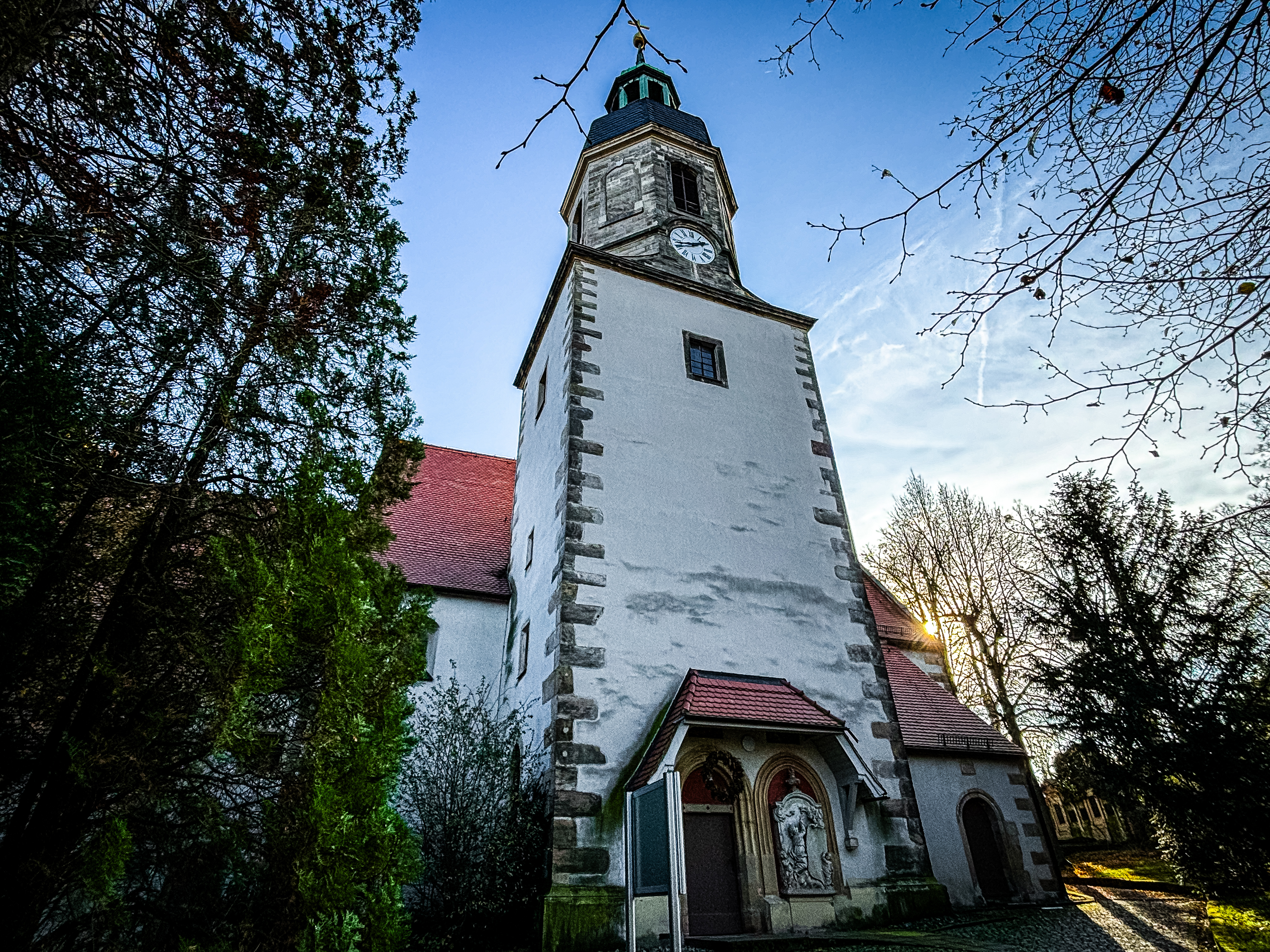 | Evangelische Pfarrkirche Kreischa Etwas höher gelegen steht die schöne Kirche von Kreischa. Sie wurde urkundlich erstmals 1346 erwähnt, aber die tatsächliche Bauzeit ist unbekannt. Allerdings weisen einige Merkmal bis ins 12. Jahrhundert zurück. Der Turm in der Nordfront der Kirche mit einer Mauerstärke von 1,35 m lässt auf einen ehemaligen Wohn- und Wehrturm schließen. Spätere Umbauten haben die Kirche nun barock überformt aber ich finde sie genau deshalb so richtig hübsch. Es lohnt sich den Weg um die Kirche zu nehmen. Hier entdecke ich wunderschöne Grabsteine aus längst vergangener Zeit. |