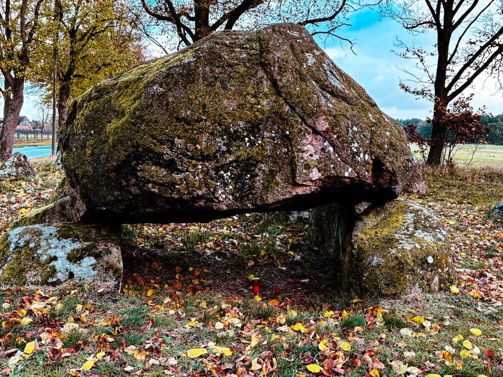 | Großsteingrab Mellen Das imposante Hünengrab in Mellen zeugt von einer weit verbreiteten Bestattungskultur der Jungsteinzeit. Ein kleiner Parkplatz ist direkt am Grab vorhanden. Ansonsten kann man auch an der Straße stehen. Noch heute ragen die Findlinge aus dem Boden und bilden eine 22 mal 8 Meter große Anlage. Es ist in der Prignitz das letzte erhaltende Großsteingrab und sehr beeindruckend. |